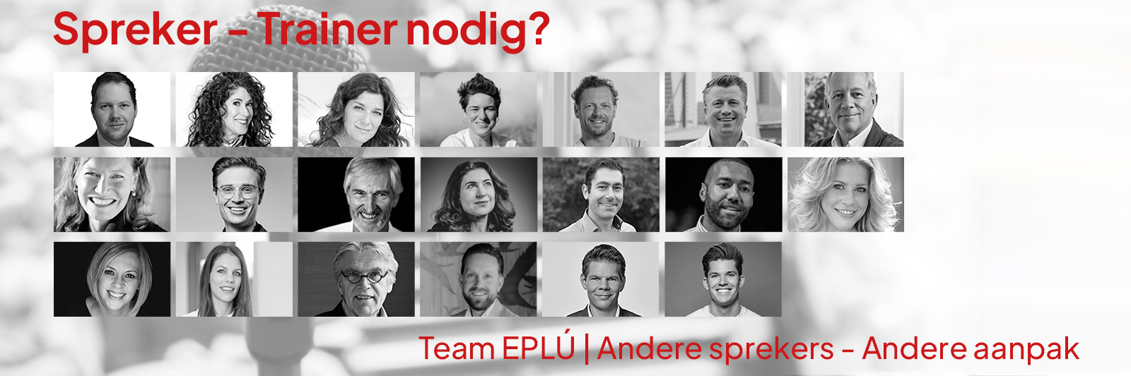 Iedere spreker van Team EPLÚ is onderscheidend met zijn of haar eigen specialisme. Een team van inspirerende mensen, ontstaan uit persoonlijke samenwerkingen, dat is Team EPLÚ!